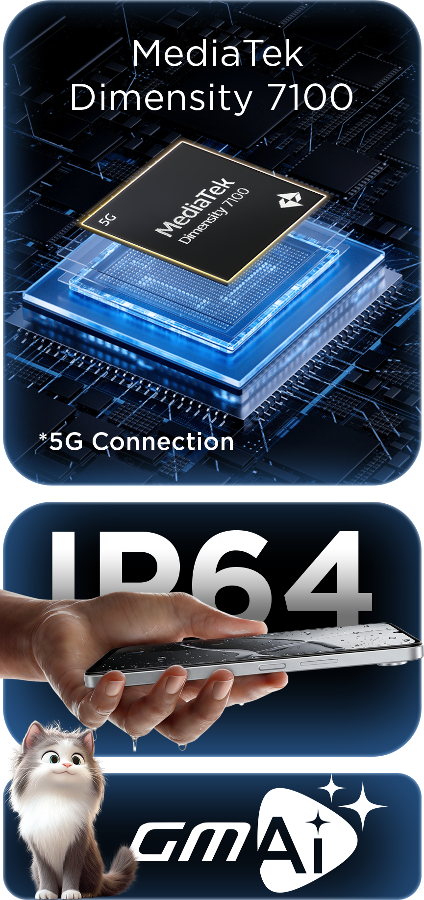 Capture sharp, detailed moments with the 64MP Sony-powered camera,
