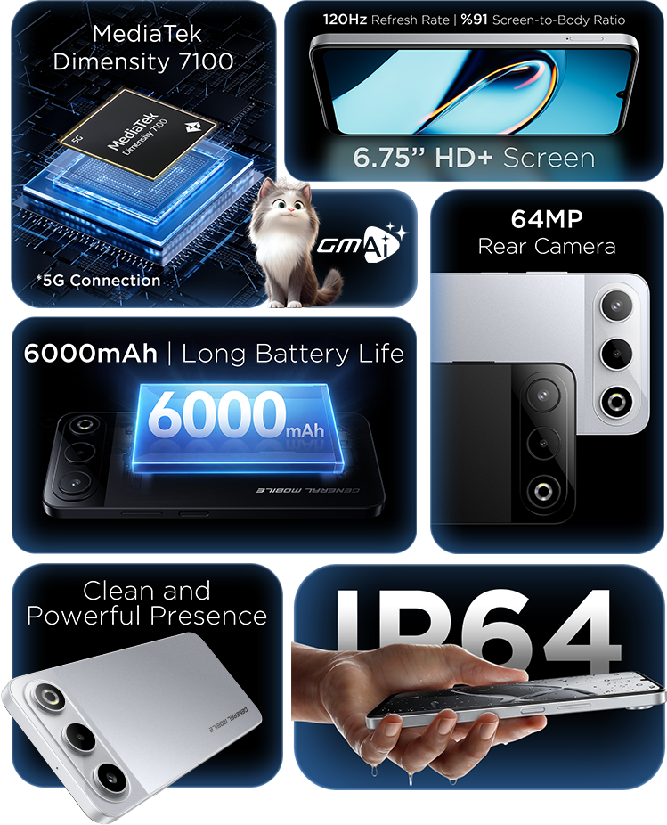 a 6.75" HD+ large display and a 120Hz refresh rate.