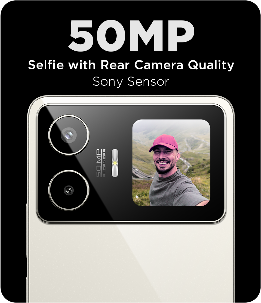 The 50MP AI Camera automatically adjusts the light and scene.