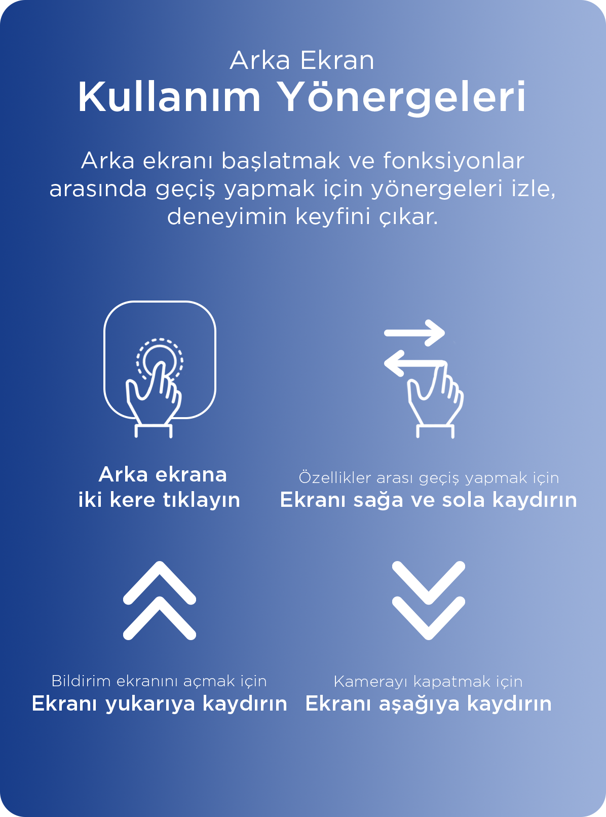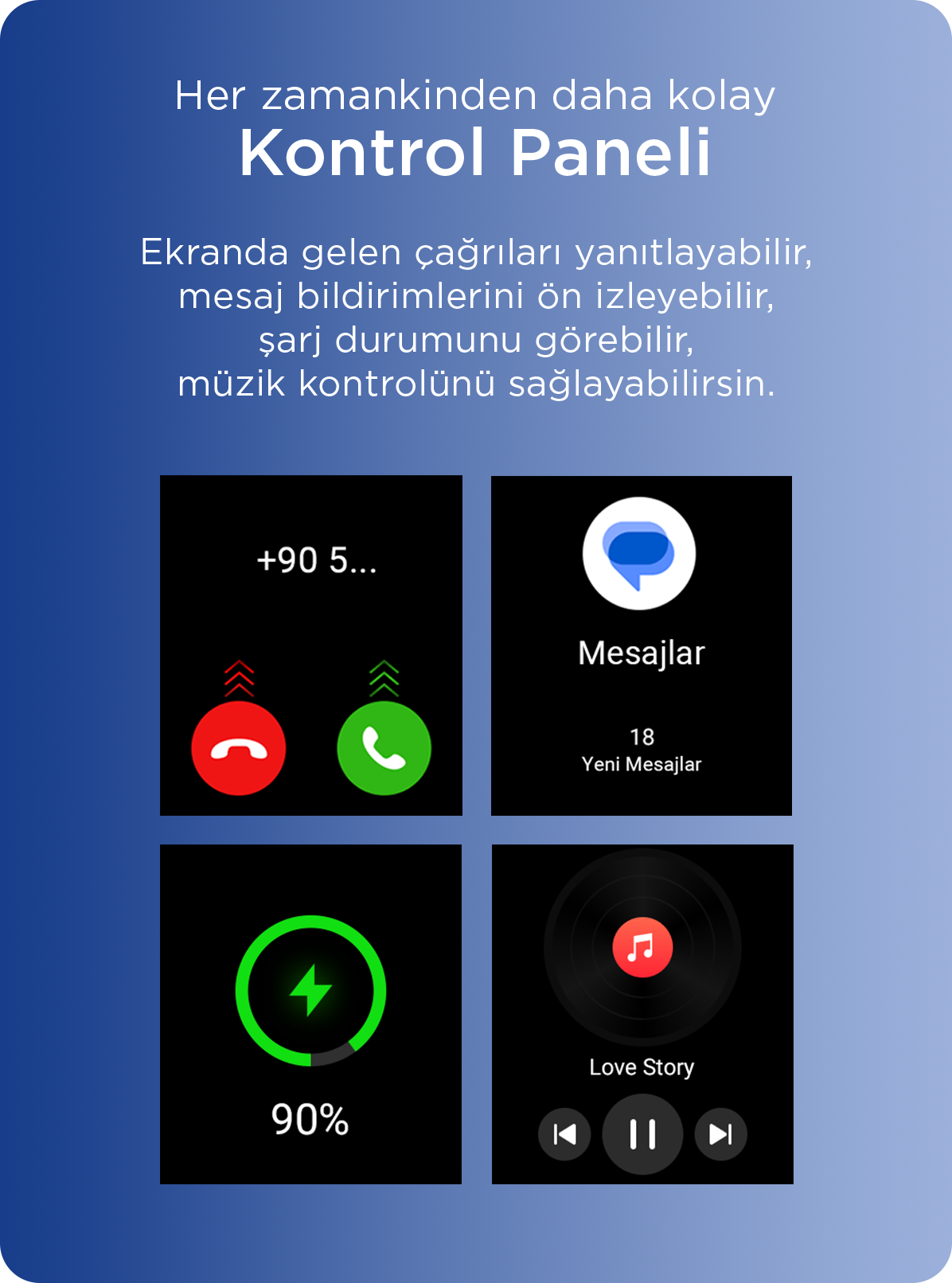 selfie çek, bildirimleri gör, kontrolü elinde tut.
